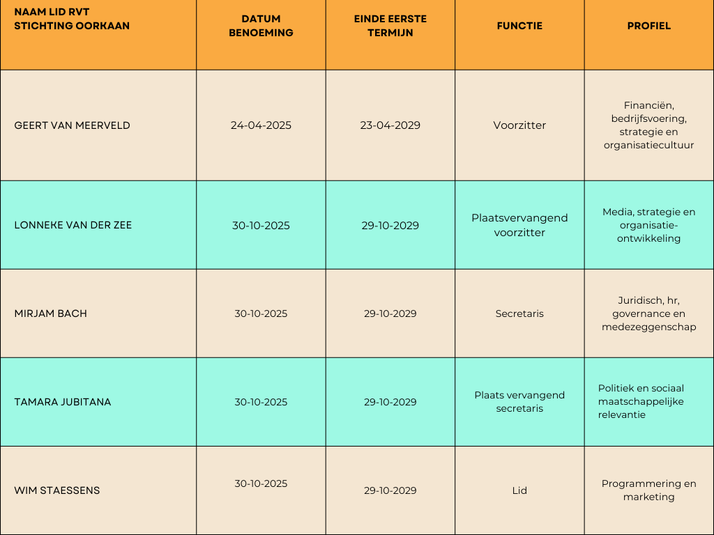 Rooster van aftreden raad van toezicht Stichting Oorkaan